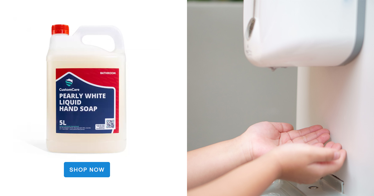 Our favourite and best-selling washroom soap is Custom Care 51049 Pearly White Liquid Hand Soap 5L. It’s a thick liquid prepared from mild ingredients for hand hygiene. Coming in a 5 litre bottle, it’s economical and ideal for bulk fill dispensers – great for when you have lots of hands to wash!