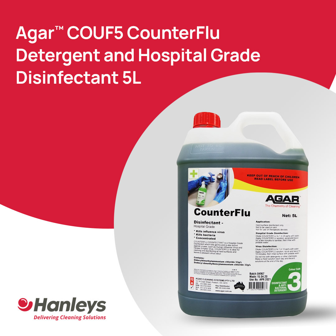 Agar™ CounterFlu is a popular choice because it’s a hospital-grade disinfectant with a powerful cleaning action that kills viruses, including COVID-19, flu, germs, bacteria, fungi and mould.